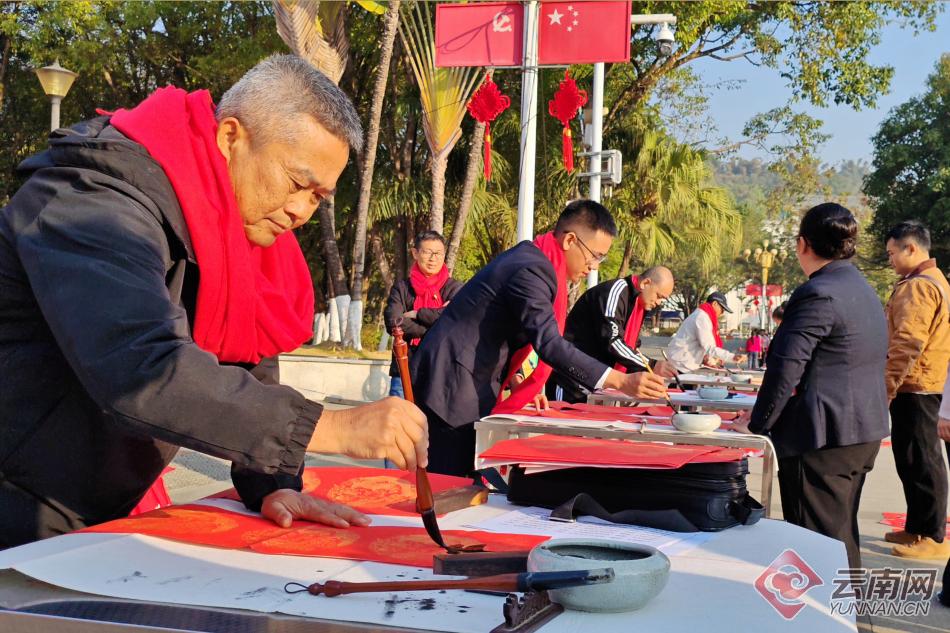 2月10日,临沧市镇康县在县城文化广场举办“墨香迎新春 福字送吉祥”义务写送春联文化惠民活动。