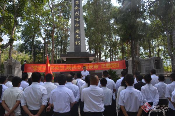 忙丙乡,40余名来自政府党支部、农牧党支部、青年人才党支部的党员深入凤尾革命烈士陵园联合开展“学党史、祭英烈、践初心、履使命”主题党日活动。在革命烈士碑前,全体党员肃立默哀、聆听烈士故事,走进革命先烈为守护边境稳固、守护边地安宁、维护边民幸福而英勇奋斗的峥嵘岁月,感悟革命先烈的爱国之情、报国之志。
