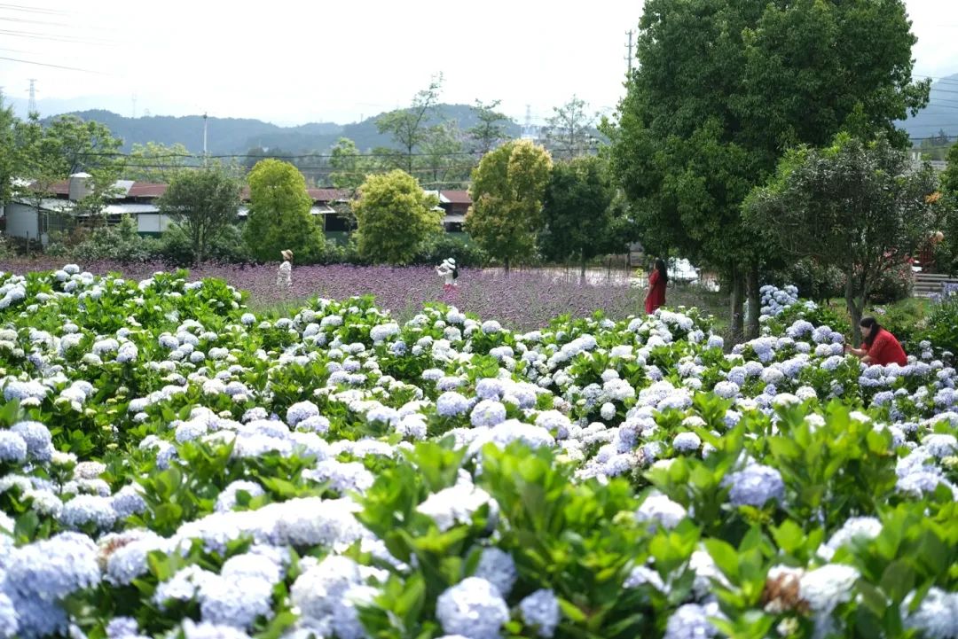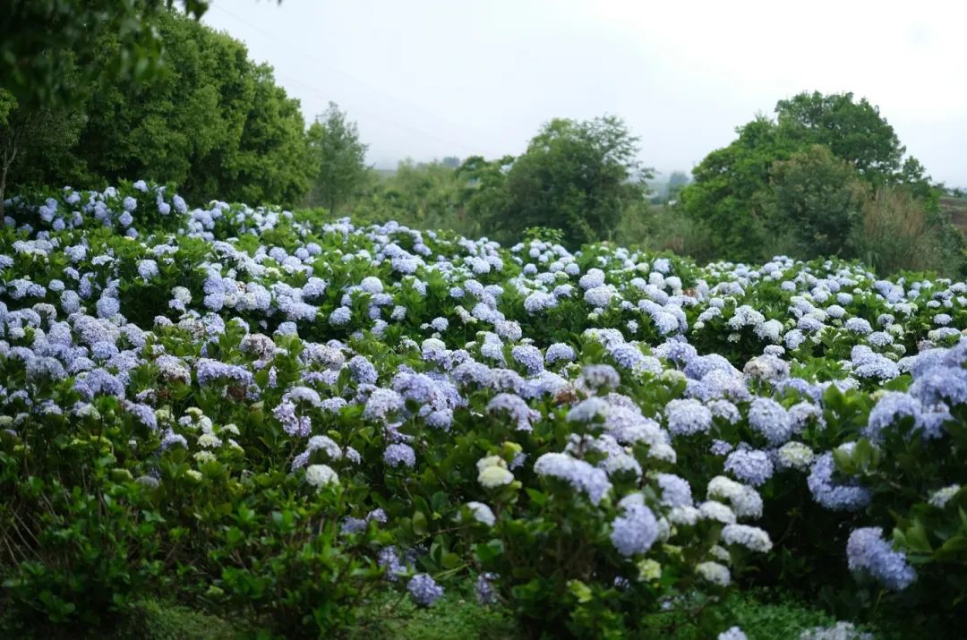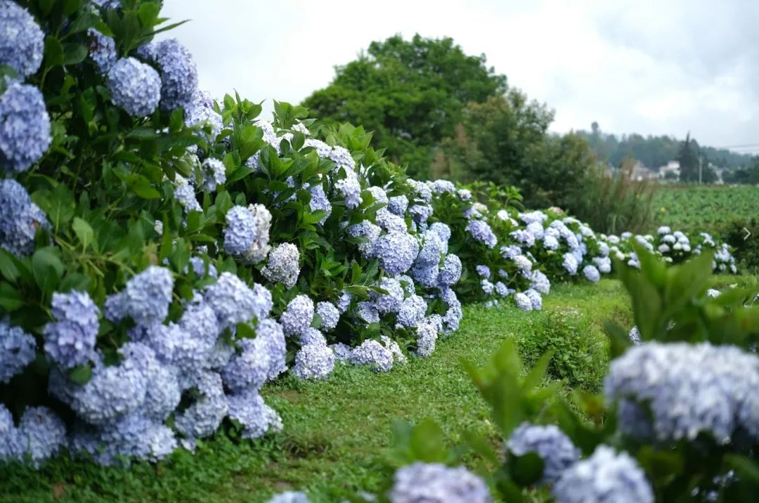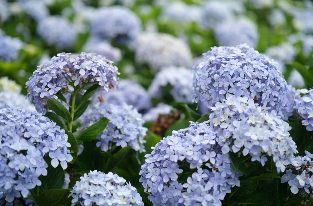 无尽夏是绣球花的一个变种,以其硕大花球(直径至少18厘米)和绵长花期闻名,能绚烂整个夏天,由此而得名“无尽夏”。其花色会随土壤酸碱度变化:在酸性土壤中呈现蓝色,碱性土壤中则变为粉色。在临沧博尚镇,独特的酸性土壤如同天然的调色盘,让无尽夏绽放出迷人的蓝紫色,蓝紫交织,为夏日增添了一抹梦幻色彩。