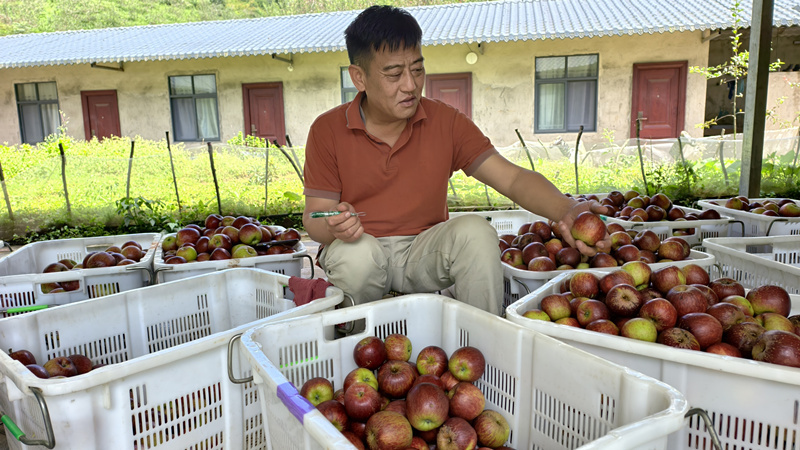 “好苹果是‘养’出来的,更是好生态‘馈赠’的。”班瑞食品有限公司负责人陈冲一边分拣打包一边介绍,“今年风调雨顺,加上我们坚持生态管护种植,挂果率再创新高,产量预计能突破70吨,苹果口感甜脆多汁、果香浓郁,是真正的‘大山味道’。”