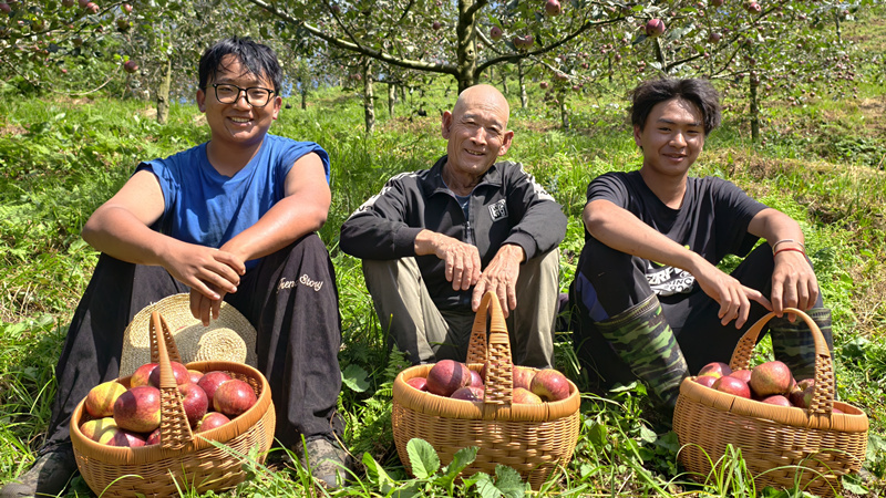 这片果园的甜蜜故事,始于一场“荒山变金山”的生态实践。2017年,班卡乡立足冷凉山区气候特点,引入农业企业,在500亩荒山上打造现代苹果庄园。面对水土流失、植被稀疏的坡地,公司坚持零农药、零化肥、零催熟,用生态疗法唤醒土地生机,经过8年的精心呵护,曾经的荒坡秃岭蜕变成一片生机勃勃的沃土。与此同时,这份源于纯净山野的“生态诚意”,让班卡“丑苹果”迅速走俏市场,成为消费者追捧的“健康珍品”,线上线下销售火爆。更令人欣喜的是,优美的果园环境本身也成了“绿色资产”,每逢采摘季,慕名而来的游客络绎不绝,体验亲手采摘的乐趣,呼吸清新山野空气,生态果园变身“网红”打卡地,绿色产业延伸出乡村旅游的“美丽经济”。