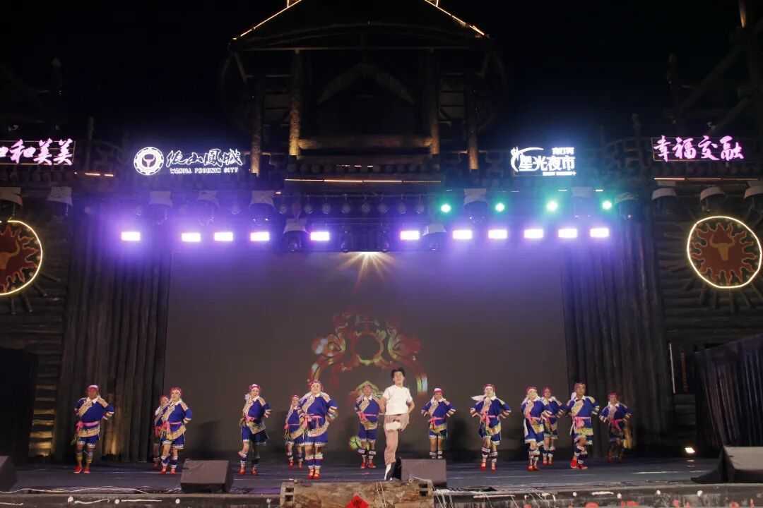 演出在气势恢宏的《鼓舞天地》中震撼开场,现场气氛瞬间被点燃。来自云南省滇剧院的艺术家们率先带来经典川剧《别洞景观》,演员们翩若惊鸿的台步、细腻传神的身段尽显传统戏曲的永恒魅力;一曲深情磅礴的《母亲是中华》唱出对祖国的无限热爱;紧跟其后的傣族群舞《盼》,生动展现了非遗在当代传承发展情况以及傣族儿女积极向上的精神风貌;随后,器乐三人合奏、小合唱《十二月茶歌》、魔术、歌曲《灯火里的中国》、舞蹈《追着彩虹走》、戏曲《穆柯寨》、歌曲《龙魂》、歌舞《民族团结一家亲》等节目轮番上演,惊艳全场。