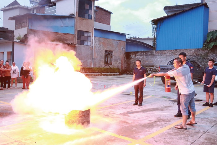 聚焦人员密集场所工作人员组织疏散能力弱的突出问题,开展“停下来”(疑似有火情时,立即停止手头事务进行确认)、“响起来”(发现火情后,向建筑内所有人员发出警报)、“逃出来”(第一时间逃到安全地带)技能培训。聚焦企业单位火灾防控需求,采取“走进去”的方式,深入各企业开展院坝消防课堂,将初起火灾扑救培训送到员工身边。培训现场,消防员结合企业生产场景特点,设置模拟车间油盆起火、电气设备冒烟等贴近实际的火情场景,组织员工分组开展灭火演练。