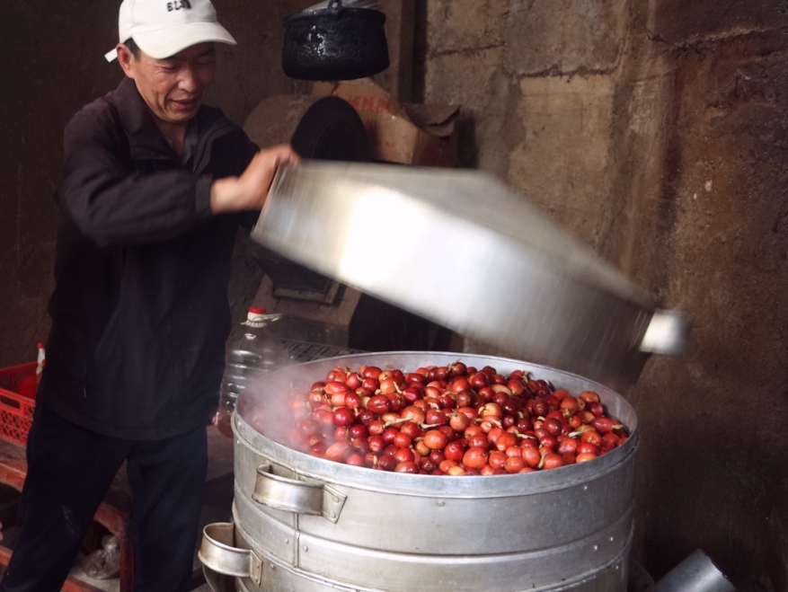 相比直接烘烤,以糯米蒸制的草果香气更浓郁、口感更醇厚。这看似细微的工艺差异,却成为康明村草果的独特印记,为种植户们赢得了稳定的客源。一颗颗小小的红草果,不仅承载着一门传统技艺的延续,更牵连着群众的生计与希望,成为群众增收的“金果果”。