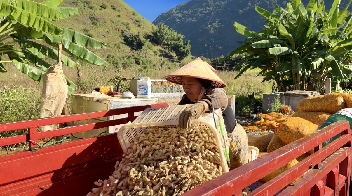 采收后的花生,还要经过清洗、晾晒、挑拣,最后送入冻库保存。这一粒花生,从土地到市场,走过的是一条不断增值的产业链。
