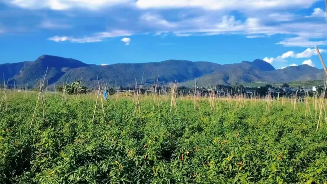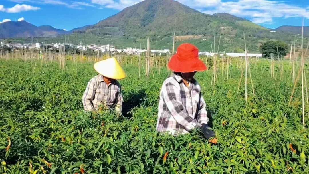 在勐底村的辣椒种植田里,枝条上缀满颗颗朝天椒,农户手法娴熟地将鲜椒采入筐中。据勐底村党总支书记唐迎春介绍,今年辣椒行情走俏,全村共种植朝天椒1500余亩,亩产约3000余斤,预计总产值可达300多万元。