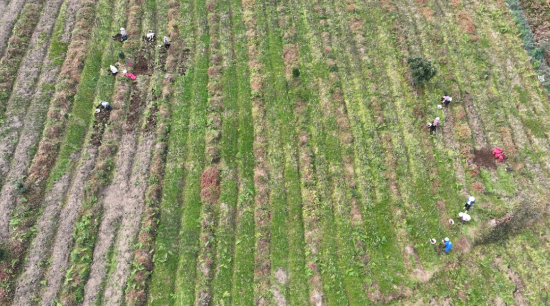 这种“林药共生”的模式不仅盘活了闲置林地,还形成了生态保护的良性循环。琼岳村在2024年种植了300多亩附子示范基地获得成功的基础上,2025年通过地块轮作、优化品种,种植附子60亩、木香240亩,还试种了天麻、滇黄精、龙胆草、金银花、当归等多种中药材。这种“以短养长、立体经营”的方式,既保护了生态,也带来了实实在在的收益。发展中药材种植以来,公司已累计发放劳务工资超50万元。