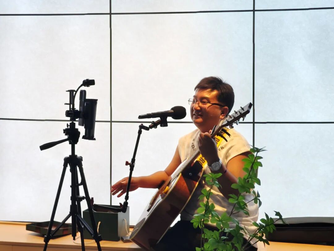 刘一江在咖宁咖啡馆直播。李丽君 摄