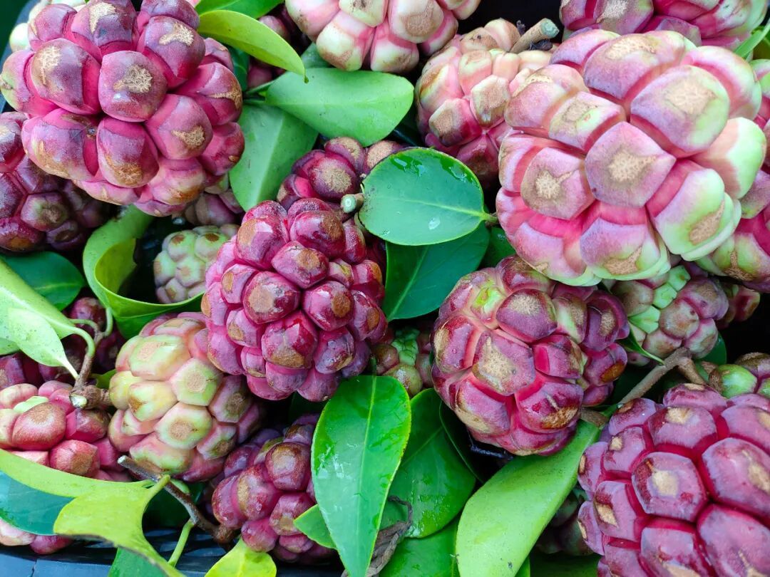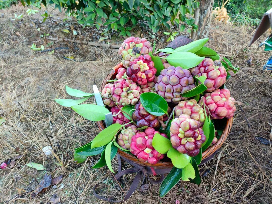 让曾志雷充满信心的“黑老虎”,又名布福娜,因其聚合果形似老虎爪而得名。这种水果不仅外形独特,成熟时色泽鲜艳如红宝石,果粒饱满紧实;口感更是别具一格,除了兼具荔枝的香甜与葡萄的清爽,还带着淡淡的牛奶丝滑质感。它全身都是宝:果皮富含花青素,可泡制成果酒或制成保健饮品;根与藤还能入药,具有行气止痛、散瘀通络的功效,经济价值远超普通水果。更值得一提的是,其采摘期可从每年10月持续至次年2月,漫长的采收期贯穿秋冬水果市场的空档期,这让种植户的销售节奏更稳、收益更有保障。