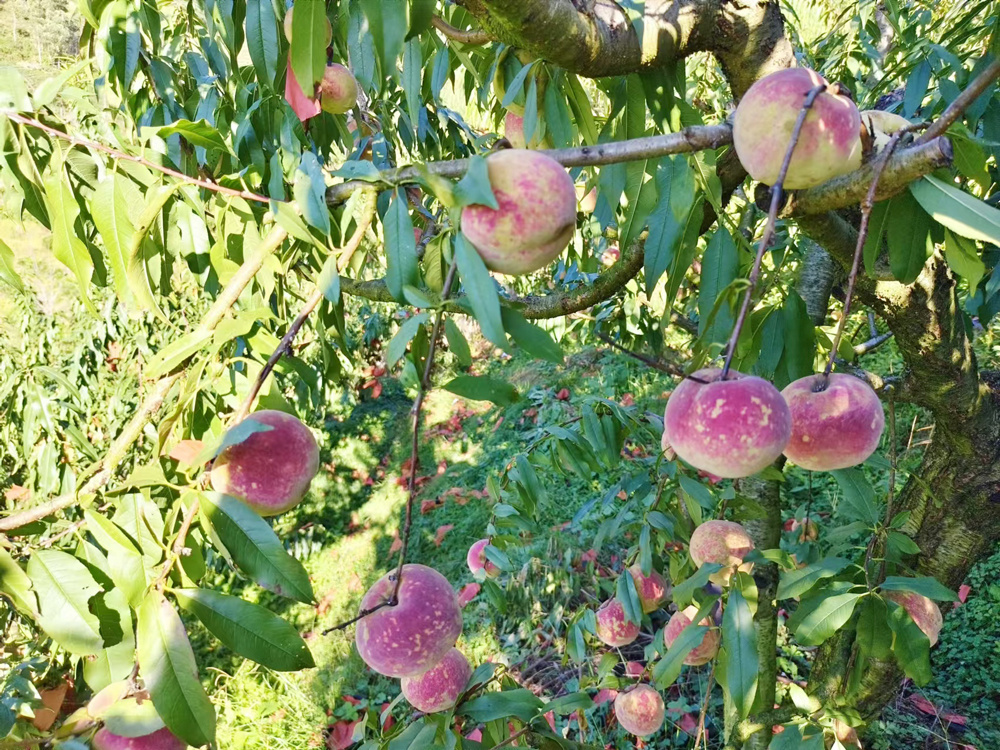 在郭大寨乡团山村的冬桃园里,果农赵老四种植的8亩冬桃已进入盛果期。他坚持绿色有机种植,全程施用农家肥、人工除草、科学修枝,历经200多天的自然孕育,结出的冬桃果型饱满、甜度高、风味浓郁,深受市场欢迎。今年预计产量超1万斤,可实现收益3万余元。