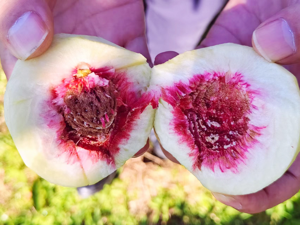 与此同时,勐佑镇的冬桃也迎来“甜蜜丰收”。河东村种植户孙秀娟的果园里,沉甸甸的果实压弯枝头,果面泛着诱人的红晕。作为晚熟品种,这里的冬桃积累了更充足的糖分与风味物质,口感远胜普通夏桃。她坚持“一树一策”精细管理,科学排水、及时清园、全程套袋,种出的冬桃脆嫩多汁、香气浓郁。