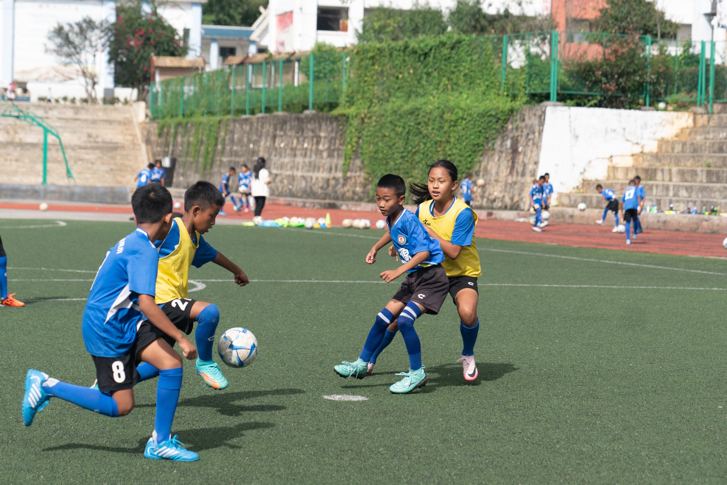 科学训育,小班化、混训制,学业与球技齐飞。入选不是终点,而是系统培养的开始。小班教学:每班不超过40人,且坚持男女比例1:1,推行男女混训。专业陪伴:每个班配备“专业教练+文化课班主任+生活管理员”的黄金团队,全方位关注孩子的训练、学习和生活。高标师资:教练均持D级以上证书,拥有职业经历和青训经验,政治合格、技能过硬。训赛结合:坚持每日2小时训练、每周1场实战。更关键的是,严格执行“文化成绩不达标则停训”制度,促使学生全面发展。目前,足球班学生的学业成绩稳居全县前列。以赛促练:在扎实的班级、校级、县域联赛基础上,积极“走出去、请进来”,参加高水平赛事,并打造了“幸福边境杯”等本土品牌赛事。