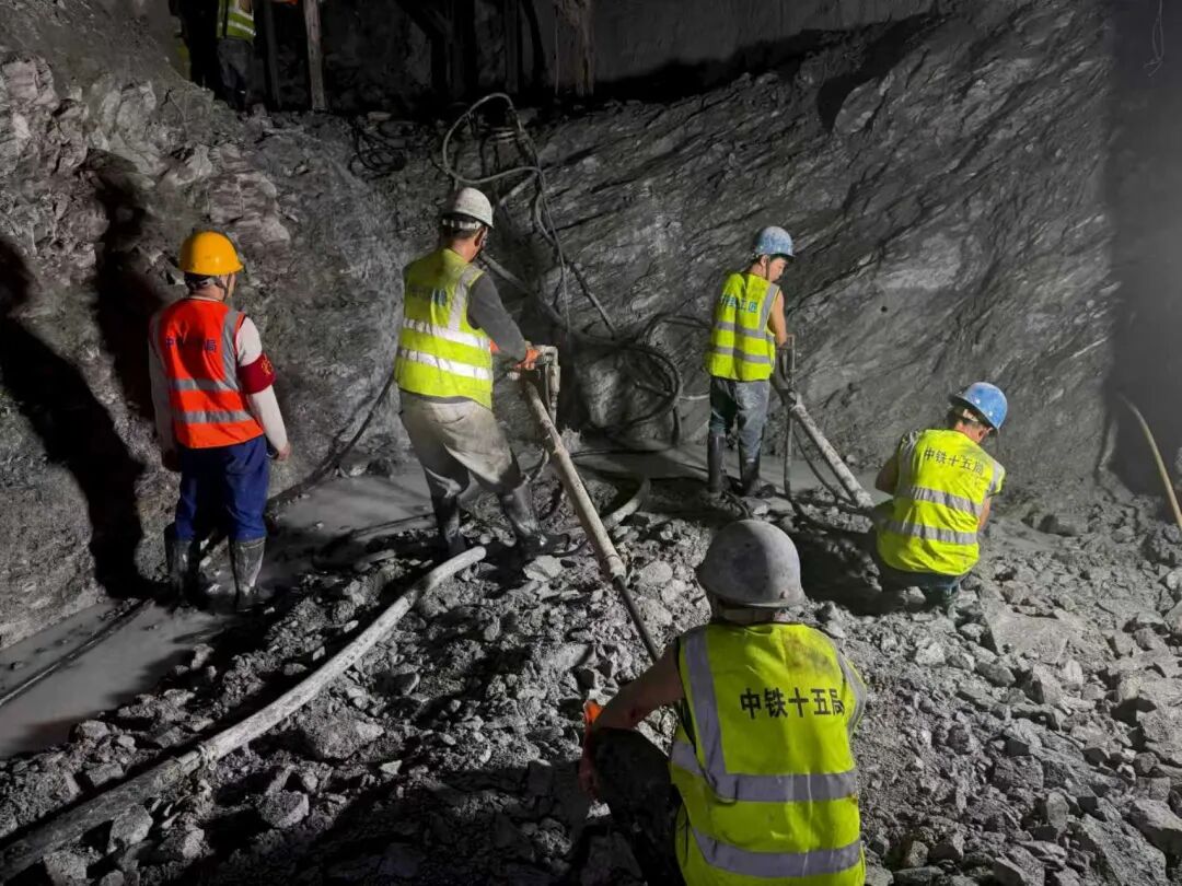 “隧道深处温度超过32摄氏度,工人们进洞不久就浑身湿透,我们戴眼镜的进来,眼镜都要脱下好几回擦去镜片雾气才能适应里面的气温。”中铁十五局项目负责人李嘉尉讲道,“为改善作业条件,项目部采取了一系列针对性措施:结合隧道实际设计巷道式通风,引入大型制冰机向掌子面输送冷风,增加雾炮机、射流风机,并在洞内配备纯净水、藿香正气水等应急物资,全力保障人员健康与施工安全。”