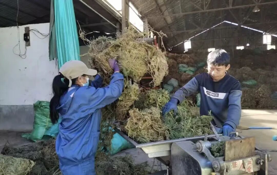 作为当地伸筋草收购大户,吴永胜今年累计从农户手中收购鲜草150余吨。收购后的鲜草经两轮精细粉碎、院场平铺晾晒、烘干打包等标准化初加工流程,远销全国各地,让大山里的原生草药实现快速变现,形成了“采收-粉碎-晾晒-销售”的成熟产业链条。