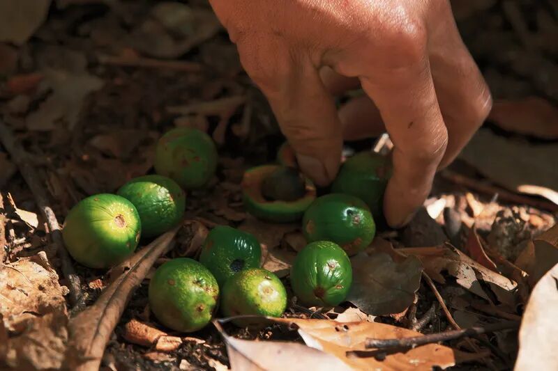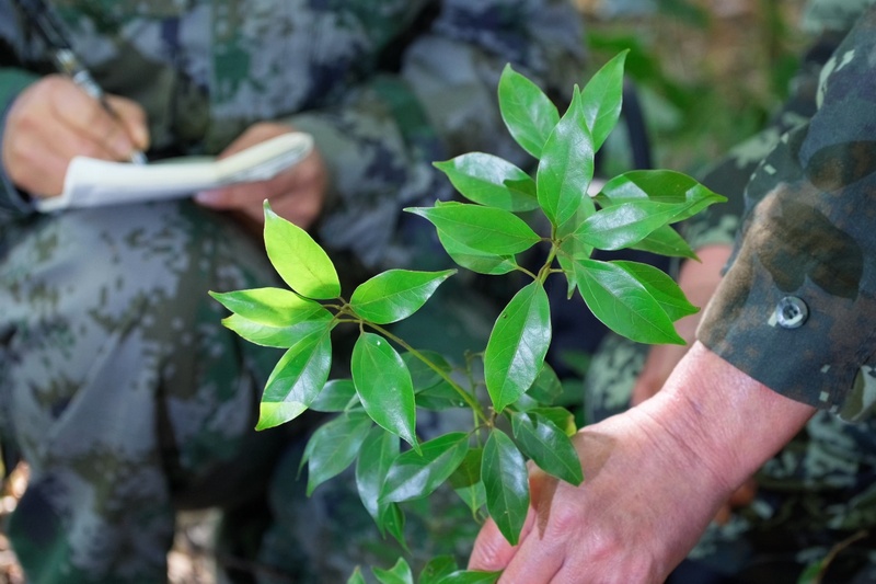 在巡护途中,记者首次见到了茶果樟的果实。其果实呈球形,直径约3厘米。孙中国工程师介绍,茶果樟花期在每年四至五月,果期在九至十月,其结实具有“三年一小结,六年一大结”的周期特点。尤为独特的是,茶果樟是樟科植物中唯一果实可供食用的树种。其果仁富含蛋白质、氨基酸、月桂酸等营养成分,并具清热明目之效,不仅具有独特的食用价值,也蕴含着潜在的食品加工与产业开发前景。