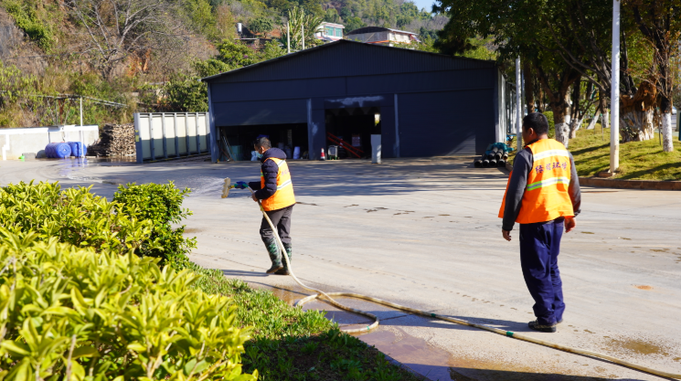 清扫一线忙碌不停,垃圾清运与绿化养护现场同样热火朝天。在县城各垃圾收集点,清运车辆有序停靠,工作人员熟练地完成垃圾吊装、密封清运等一系列操作,动作规范高效,确保垃圾不滞留、不渗漏。与此同时,绿化养护区域内,环卫工人手持修枝剪、洒水壶等工具,细致清理景观树枯枝败叶,为绿化带补水保湿,全方位打理城市绿化景观,让新春里的永德既干净整洁又生机盎然。