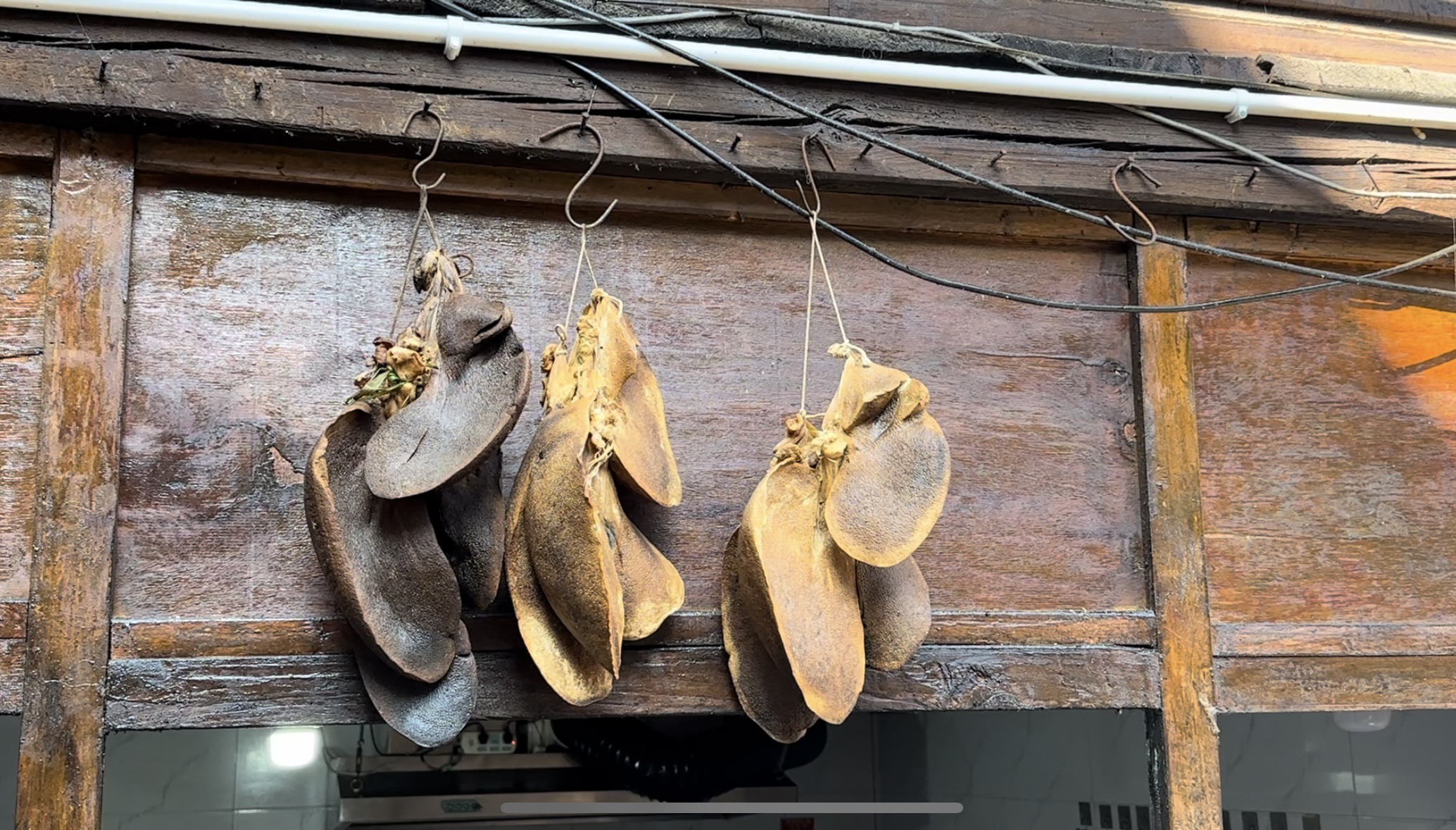 鲁史吹肝的诞生,源于茶马古道上的生活智慧。古时马帮行商途中需便携耐存的美食,当地人便巧用本地土猪鲜肝,以独创的“吹气腌制法”保鲜提味,让这道美味随马帮足迹流传至今。其制作工艺堪称非遗级匠心:精选饱满鲜红的本地土猪肝,从气口处细细吹气使其膨胀如鼓,再将盐、辣椒、草果、鲁史土产白酒等十余种香料调制的酱汁灌入其中,内外涂抹均匀后,悬挂于古镇屋檐下,借茶马古道的清风自然风干数月。阳光与风的雕琢让香料慢慢渗透,最终成就色泽深润、肌理绵密的独特风味。