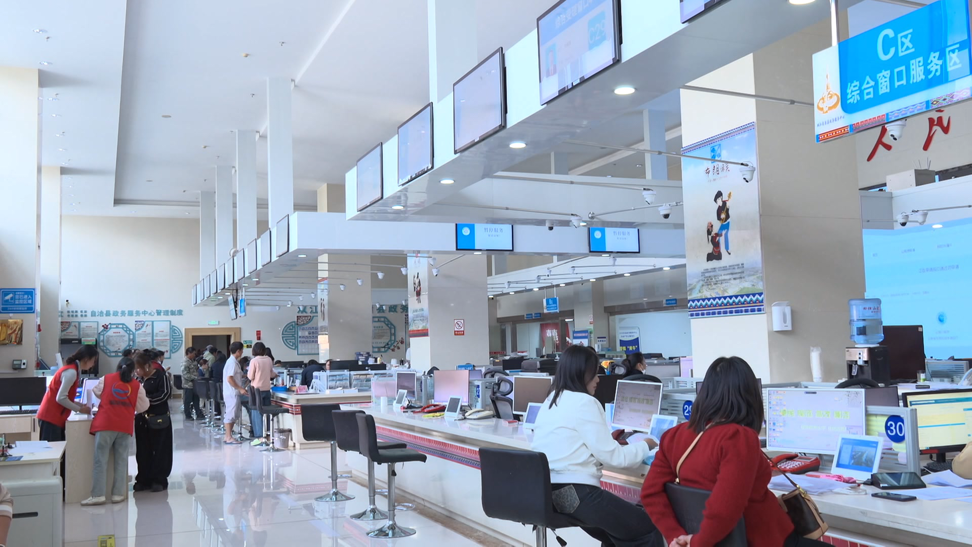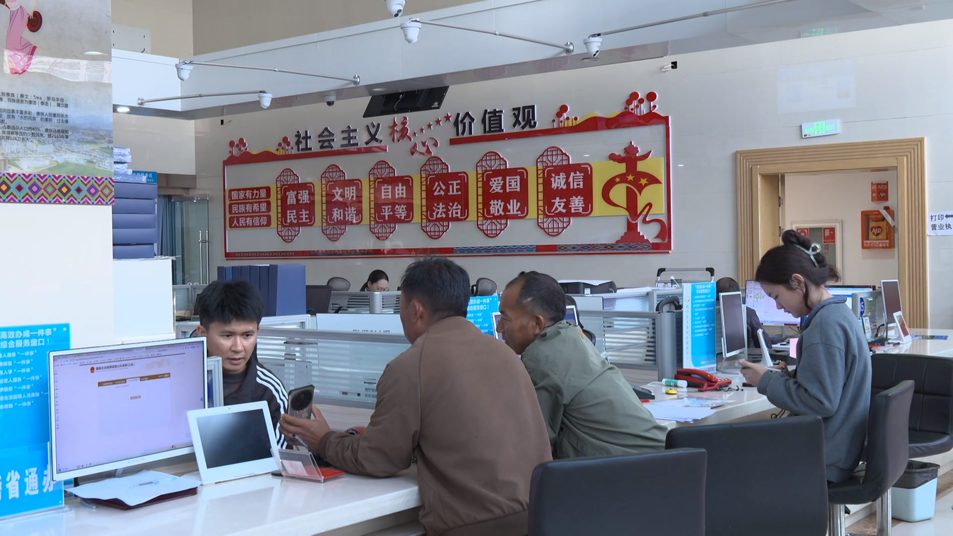作为全县政务服务的“总窗口”,双江县政务服务中心整合了公安、民政、税务等58个部门的服务资源,实现多业务“一窗通办”。“群众不用在多个部门间来回跑,在这里就能把所有业务一次性办完。”李娇边走边介绍,身影穿梭在各个窗口,熟稔而忙碌。