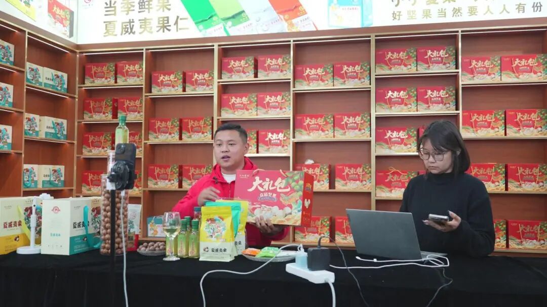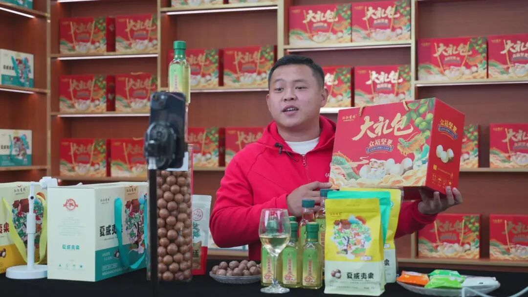 “来直播间的朋友们看过来,我手里拿的是我们云南临沧镇康的坚果,今年刚下树的鲜果子,每个果子都是壳薄肉厚,非常的好吃,过年想囤年货的就可以选择我们的大礼包……”在众裕农业公司坚果直播间里,00后青年李青云正对着手机镜头热情推介,直播间的评论区十分热闹,工作人员在一旁快速上链接,一派忙碌的新春备货景象。