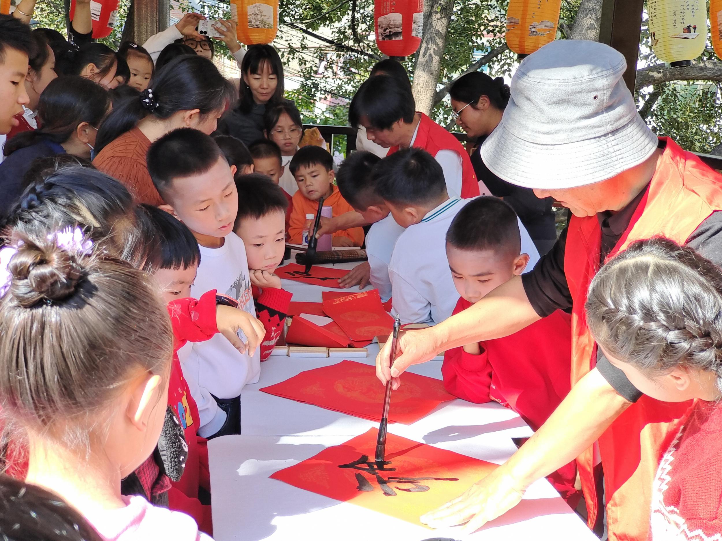 活动现场暖意融融、墨香四溢。志愿者老师用通俗易懂的语言,讲解春联起源、对仗规则、平仄讲究与张贴礼仪,拆解“仄起平收”技巧,让孩子们读懂文字里的年俗智慧。书法体验环节,红纸铺展、笔墨齐备,孩子们提笔蘸墨、认真书写“福”字,一笔一画饱含新春期盼,在挥毫泼墨中感受书法之美与浓浓年味。