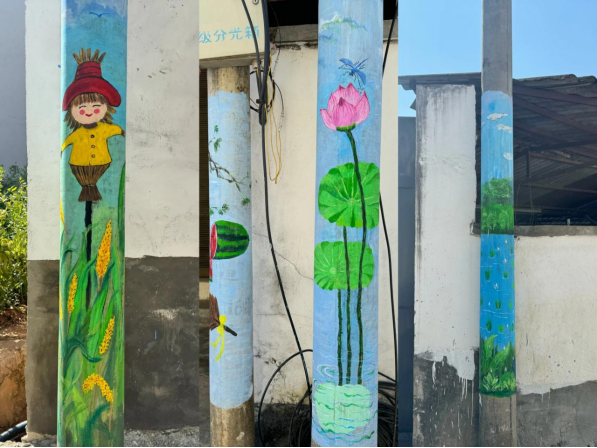 “耕牛、插秧、丰收等图画让乡村焕发新生。”临翔区勐准村的变化则带着“文艺范儿”,曾经贴满小广告的电线杆,摇身一变成了“二十四节气文化墙”。带来这一变化的是“自然村长”付开玲,上任后,她把“画室”搬到村口巷尾,一笔一画美化电线杆和墙面。一支画笔不仅美化了村容,更汇聚了人心,乡亲们自发清理巷道、栽种花草,从“看着美”到“一起美”,基层治理的活力在点滴中被激发。