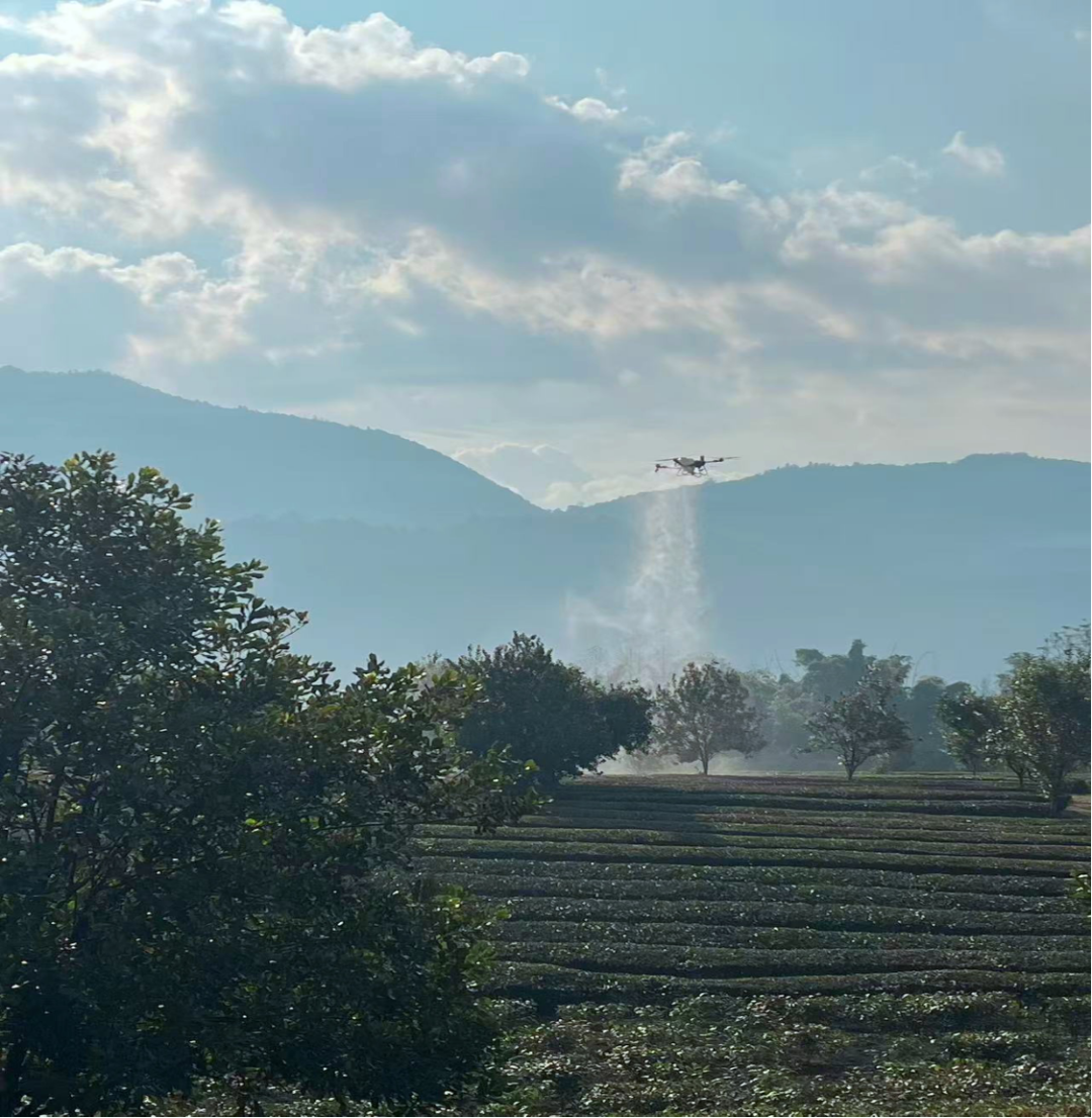 (坚果病虫害防控无人机作业)