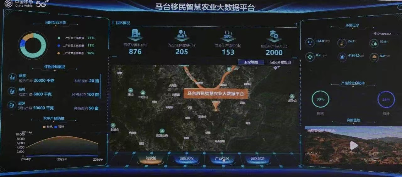 走进马台乡智慧农业大数据服务平台指挥中心,大屏幕上实时跳动着各产业基地的土壤湿度、气象数据、病虫害预警等信息。借助5G‑A技术的高速率、低延时特性,各类数据实现实时回传、精准分析,让农业生产环境真正做到远程可视、可控。